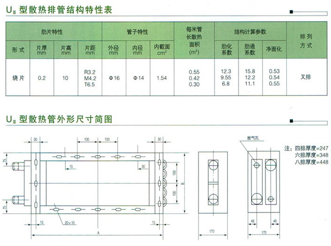 如采用兩排,片距為3.2mm,表面管數(shù)為21,管長為60英寸,則為UII-2(R)-21-60
